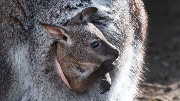 Another easy way to identify a wallaby from a kangaroo is their color. A wallaby's coat is usually brighter with two to three different color variations. For example, the unfortunately named red-necked wallaby has a grayish belly with red markings on its shoulders. The kangaroo's coat is usually less splashy and more uniform, with muted colors of either brown or gray.